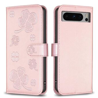 Για το Google Pixel 8 Pro τετράφυλλο ανάγλυφη δερμάτινη θήκη τηλεφώνου (ροζ)