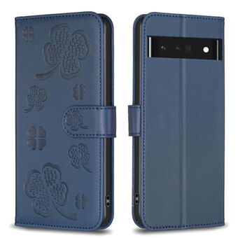 Για το Google Pixel 7 Pro τετράφυλλο ανάγλυφη δερμάτινη θήκη τηλεφώνου (μπλε)