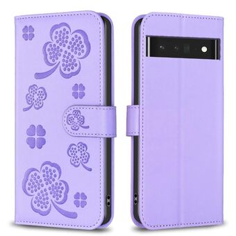 Για το Google Pixel 7 Pro τετράφυλλο ανάγλυφη δερμάτινη θήκη τηλεφώνου (μωβ)