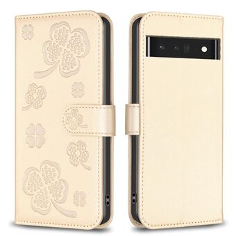 Για το Google Pixel 7 Pro τετράφυλλο ανάγλυφη δερμάτινη θήκη τηλεφώνου (χρυσό)