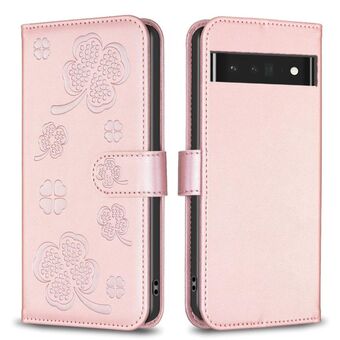 Για το Google Pixel 7 Pro τετράφυλλο ανάγλυφη δερμάτινη θήκη τηλεφώνου (ροζ)