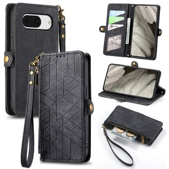 Για το Google Pixel 8a Γεωμετρικό φερμουάρ πορτοφόλι πλευρά πόρπη δερμάτινη θήκη τηλεφώνου (μαύρο)