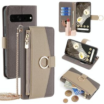 Για το Google Pixel 7 Pro Crossbody Litchi Texture Δερμάτινη θήκη τηλεφώνου (γκρι)