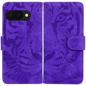 For Google Pixel 9a Tiger Embossing Pattern Flip Leather Phone Case(Purple)