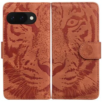 For Google Pixel 9a Tiger Embossing Pattern Flip Leather Phone Case(Brown)
