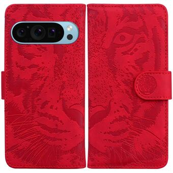 For Google Pixel 9 Tiger Embossing Pattern Flip Leather Phone Case(Red)