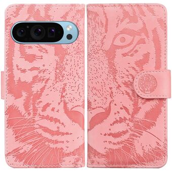 For Google Pixel 9 Tiger Embossing Pattern Flip Leather Phone Case(Pink)