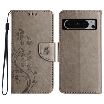 Για το Google Pixel 8 Pro πεταλούδα λουλούδι μοτίβο Flip δέρμα τηλέφωνο υπόθεση (γκρι)