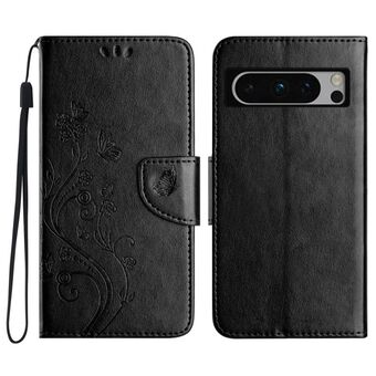 Για το Google Pixel 8 Pro πεταλούδα λουλούδι μοτίβο Flip δέρμα τηλέφωνο υπόθεση (μαύρο)