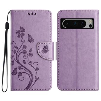 Για το Google Pixel 8 Pro πεταλούδα λουλούδι μοτίβο Flip δέρμα τηλέφωνο υπόθεση (Light Purple)