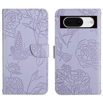 Για το Google Pixel 8a Skin Feel Πεταλούδα ανάγλυφο Flip υπόθεση τηλεφώνου δέρμα (μωβ)