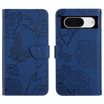 Για το Google Pixel 8a Skin Feel Πεταλούδα ανάγλυφο Flip υπόθεση τηλεφώνου δέρμα (μπλε)