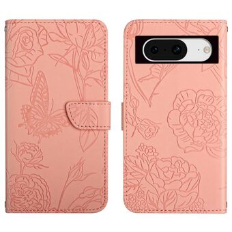 Για το Google Pixel 8a Skin Feel Πεταλούδα ανάγλυφο Flip υπόθεση τηλεφώνου δέρμα (ροζ)