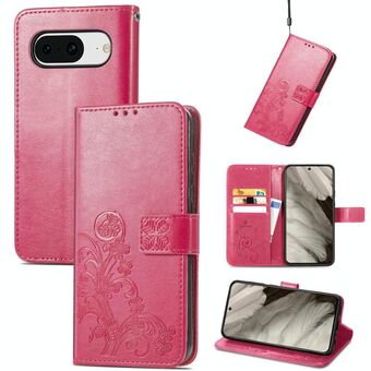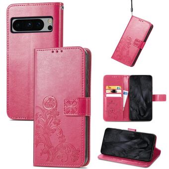 Για το Google Pixel 8 Pro τετράφυλλο κούμπωμα ανάγλυφη δερμάτινη θήκη τηλεφώνου (ροζ χρυσό)