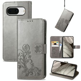 Για το Google Pixel 8 Pro τετράφυλλο κούμπωμα ανάγλυφη δερμάτινη θήκη τηλεφώνου (γκρι)