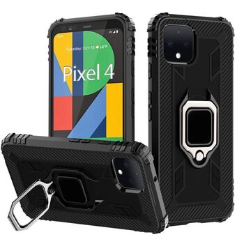 Για το Google Pixel 4 Προστατευτική θήκη από ανθρακονήματα με περιστρεφόμενη θήκη δακτυλίου 360 μοιρών (Μαύρο)