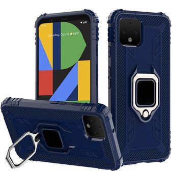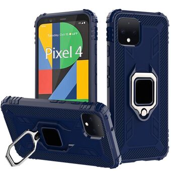 Για το Google Pixel 4 Προστατευτική θήκη από ανθρακονήματα με περιστρεφόμενη θήκη δακτυλίου 360 μοιρών (μπλε)