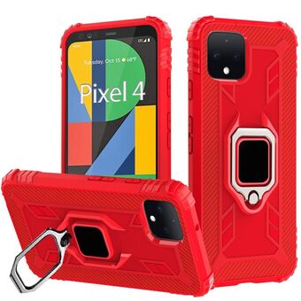 Για το Google Pixel 4 Προστατευτική θήκη από ανθρακονήματα με περιστρεφόμενη θήκη δακτυλίου 360 μοιρών (κόκκινο)