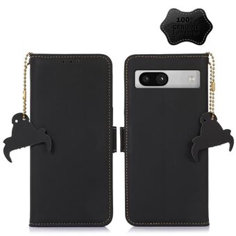 For Google Pixel 7a Genuine Leather Magnetic RFID Leather Phone Case(Black)