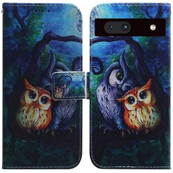 For Google Pixel 7a Coloured Drawing Flip Leather Phone Case(Oil Painting Owl)