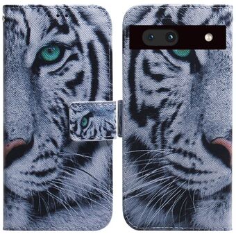 For Google Pixel 7a Coloured Drawing Flip Leather Phone Case(Tiger)