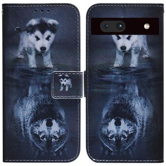 For Google Pixel 7a Coloured Drawing Flip Leather Phone Case(Wolf and Dog)
