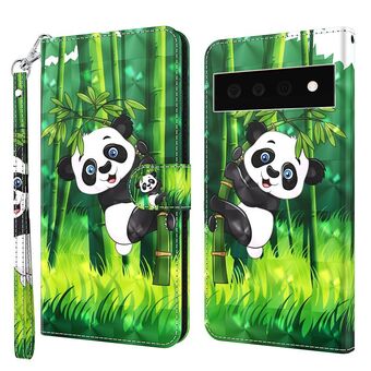 For Google Pixel 6 Pro 3D Painting Pattern TPU + PU Leather Phone Case(Panda Climbing Bamboo)