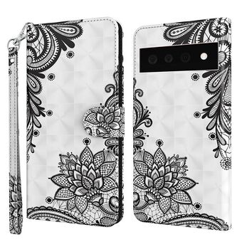 For Google Pixel 6 Pro 3D Painting Pattern TPU + PU Leather Phone Case(Diagonal Black Flower)