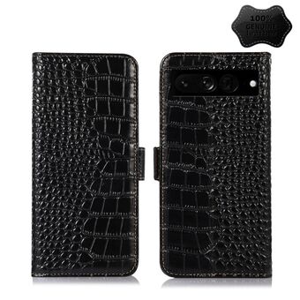 For Google Pixel 7 Pro 5G Crocodile Top Layer Cowhide Leather Phone Case(Black)