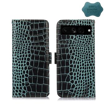 For Google Pixel 7 Pro 5G Crocodile Top Layer Cowhide Leather Phone Case(Green)