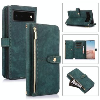 Για το Google Pixel 6a Dream 9-Card πορτοφόλι φερμουάρ τσάντα δερμάτινη θήκη τηλεφώνου (πράσινο)