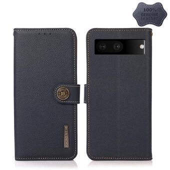 For Google Pixel 7 5G KHAZNEH Custer Genuine Leather RFID Phone Case(Blue)