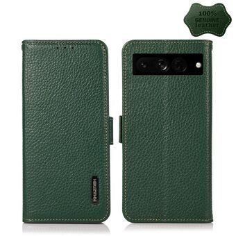 For Google Pixel 7 5G KHAZNEH Side-Magnetic Litchi Genuine Leather RFID Phone Case(Green)
