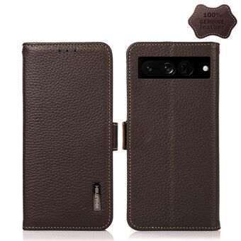 For Google Pixel 7 5G KHAZNEH Side-Magnetic Litchi Genuine Leather RFID Phone Case(Brown)