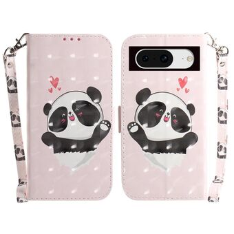 Θήκη τηλεφώνου δερμάτινη, οριζόντια, αναδιπλούμενη, έγχρωμη 3D για Google Pixel 8 (Heart Panda)