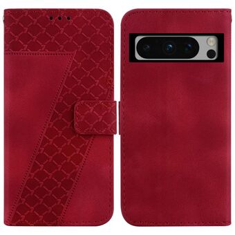 Θήκη τηλεφώνου από ανάγλυφο δέρμα σε σχήμα επτά για Google Pixel 8 Pro (Κόκκινο)