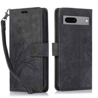 Θήκη τηλεφώνου από δέρμα με ανάγλυφο σχέδιο πεταλούδας ορχιδέας για Google Pixel 7a (Μαύρο)