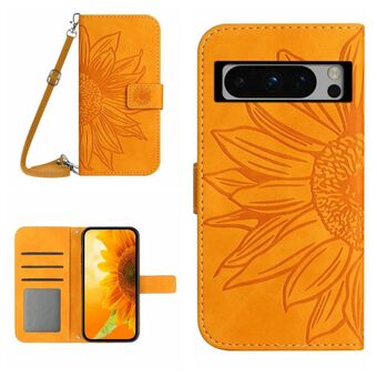 Για το Google Pixel 8 Pro Skin Feel Sun Flower ανάγλυφο ανάγλυφο Flip δέρμα τηλέφωνο υπόθεση με κορδόνι (κίτρινο)