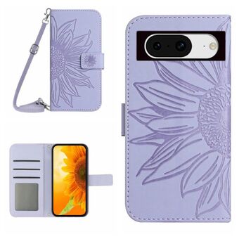 Για το Google Pixel 8 Skin Feel Sun Flower ανάγλυφο ανάγλυφο Flip δερμάτινη θήκη τηλεφώνου με κορδόνι (μωβ)