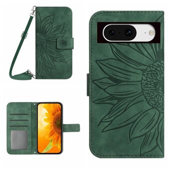 Για το Google Pixel 8 Skin Feel Sun Flower ανάγλυφο ανάγλυφο Flip δερμάτινη θήκη τηλεφώνου με κορδόνι (πράσινο)