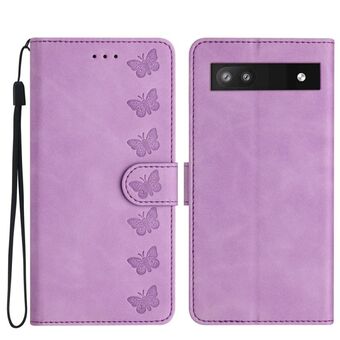 Για το Google Pixel 6a Επτά πεταλούδες ανάγλυφη δερμάτινη θήκη τηλεφώνου (μωβ)