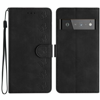 Για το Google Pixel 6 Pro Επτά πεταλούδες ανάγλυφη δερμάτινη θήκη τηλεφώνου (μαύρο)