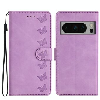 Για το Google Pixel 8 Pro Επτά πεταλούδες ανάγλυφη δερμάτινη θήκη τηλεφώνου (μωβ)