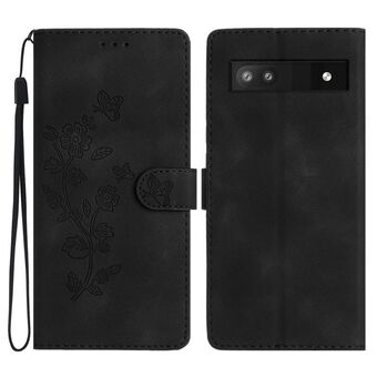 Για το Google Pixel 7a λουλούδι πεταλούδα ανάγλυφο μοτίβο δερμάτινη θήκη τηλεφώνου (μαύρο)