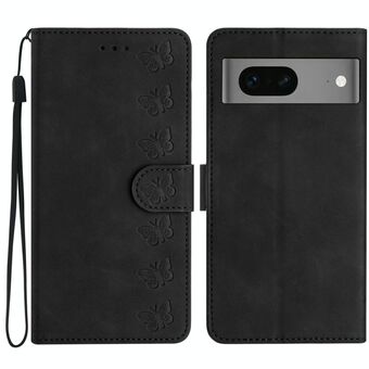 Για το Google Pixel 7 Επτά πεταλούδες ανάγλυφη δερμάτινη θήκη τηλεφώνου (μαύρο)