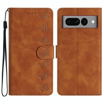 Για το Google Pixel 7 Pro Επτά πεταλούδες ανάγλυφη δερμάτινη θήκη τηλεφώνου (καφέ)