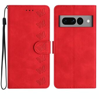Για το Google Pixel 7 Pro Επτά πεταλούδες ανάγλυφη δερμάτινη θήκη τηλεφώνου (κόκκινο)