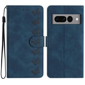 Για το Google Pixel 7 Pro Επτά πεταλούδες ανάγλυφη δερμάτινη θήκη τηλεφώνου (μπλε)