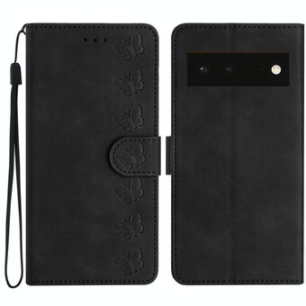 Για το Google Pixel 6 Επτά πεταλούδες ανάγλυφη δερμάτινη θήκη τηλεφώνου (Μαύρο)
