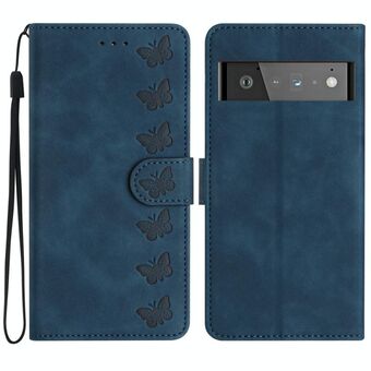 Για το Google Pixel 6 Pro Επτά πεταλούδες ανάγλυφη δερμάτινη θήκη τηλεφώνου (μπλε)